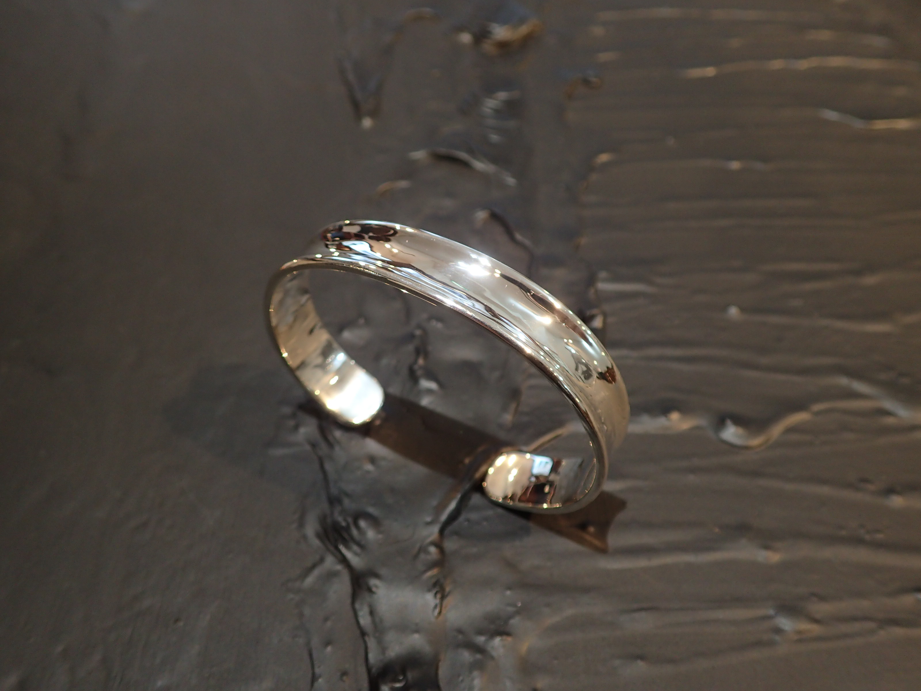 「シルバーバングル」 弧を描いた表面、腕なじみの良いカーブ。 体格と好みに合う幅、着け心地の良い厚み、重さ。 既製品を見た時の”少し違う” お店に”ありそうで”色々さがしてみるけど”ない” 全てを叶えるのがオーダーメイドの魅力です。 素材:シルバー925